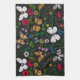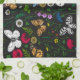 Wild flowers and butterflies on black tea towel