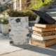 Gorgeous watercolor flowers in purple and white, along with a diploma and graduation cap