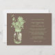 Perfect for a country style wedding or maybe you just love Mason Jars! Old vintage Mason Jar hanging on a hook with country wildflowers. A KRAFT BROWN background with light green (sage) drawing of a Mason Jar filled with wildflowers. If you have any questions on this design or want a colour change please email me paula@labellarue.com Also check for the RSVP, RECEPTION and GUEST SEATING Cards to match!