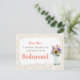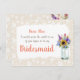 The vibrance of wild flowers in a jar, against a light peony floral pattern border, makes this a very popular choice for a rustic themed wedding. And a lovely way to ask your intended Bridesmaids, Flower Girls and Maid of Honour! Personalise words as you so wish.