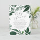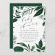 Our Wild Forest baby shower invitation features your baby shower details in chic off-black, framed by painted watercolor foliage in lush shades of hunter green. A fresh take on the botanical trend with painted leaves and elegant calligraphy accents that's perfect for winter or spring gender neutral baby showers.