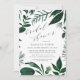 Our Wild Forest bridal shower invitation features your bridal shower details in chic off-black, framed by painted watercolor foliage in hunter green. A fresh take on the botanical trend with wintry leaves and elegant calligraphy accents that's perfect for winter or spring bridal showers.