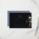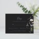 This wild forest floral black wedding rsvp is perfect for a rustic wedding. This design features hand-painted watercolor white and blue wild forest flowers with green foliage in a black background.