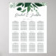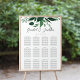 Wedding seating chart matches our Wild Forest collection, featuring lush green watercolor botanical foliage at the top, with your guest seating details beneath.