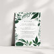 Designed to coordinate with our Wild Forest wedding collection, this elegant winter botanical guest information card features a border of rich hunter green watercolor foliage encircling your key wedding details, like hotel accommodations, welcome reception information, website and more. Add your custom text using the fields provided, then adjust fonts, sizes and spacing if needed.