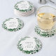 Add personalised charm to your spring or winter wedding cocktail hour or reception with these chic botanical coasters. Design features your names encircled by a wreath of watercolor foliage and leaves in rich shades of hunter green. Designed to match our Wild Forest wedding collection.