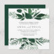 Our Wild Forest wedding invitation in a unique square format frames your wedding details with a top and bottom border of watercolor foliage in wintry shades of forest and hunter green. A modern yet organic choice for winter or spring weddings featuring intricately painted watercolor botanicals in fresh green.