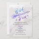 Watercolor design in shades of blues, purples, and greys. Arrow graphic with the text, "Wild & Free." Perfect for a Gender Reveal party or a gender-neutral baby shower. Personalise with your information. All text below can be changed.