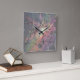 This digital artwork using bit of abstract, there are glass leaves and a colorful a bit abstract art in behind the leaves. This will make great decor for any home