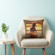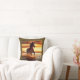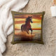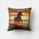 Throw pillow in a portrait of a beautiful wild horse galloping through the surf, against a sunset sky