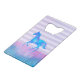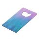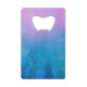 A personalised bottle opener with a pretty watercolor horse in blue and purple colours. Running wild and free. Set on a horizontal purple striped background with a vintage flair. A blue and pink watercolor border layered across the bottom.