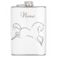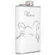 The flask itself is fine. It’s a cheap flask, obviously bought in bulk, however am prepared to overlook that. Given that it is a personalized item, I would have liked to have seen gift boxing instead of the generic packaging. Terrible printing, and/or quality. It’s a cheap, tacky vinyl. It is not cut straight and is also applied in a way that it is overhanging the bottom, causing the glue to catch on items and it will eventually roll and tear, damaging the wrap.