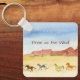 A watercolor of a herd of wild horses adorns this 'Free as the Wind!' keychain! Customise by changing the text to suit yourself!