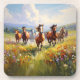 A coaster image for cowgirls, cowboys and western art lovers, a gorgeous painting of wild horses running in a grassy field of wildflowers.