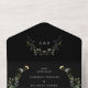 Wild Meadow watercolor wildflowers, all in one wedding invitation in moody black background colour. Template provides, invitation, rsvp card and space to personalise each invitation with your guest's name(s) and address.
