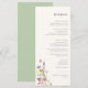 Elegant Watercolor Wildflower Floral Arrangement, wedding menu. Features, black typography on soft beige and coordinating solid dusty sage colour backing.