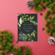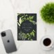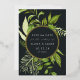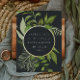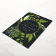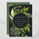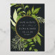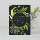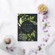 Our Wild Meadow save the date card surrounds your wedding details with a circular border of vibrant watercolor foliage in soft shades of spring green, trimmed with gold foil on a rich charcoal black background. A modern yet organic choice for spring or summer weddings featuring intricately painted botanical elements.