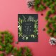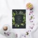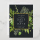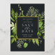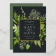 Our Wild Meadow wedding save the date frames your wedding details with an elegant square border of lush watercolor foliage in spring shades of moss and sage green, with real gold foil trim on a rich charcoal background. A modern and elegant take on the botanical trend for spring or summer weddings in fresh greens.