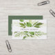 Chic botanical business cards feature your name or company name flanked by a top and bottom border of painted watercolor botanical leaves in rich shades of green. Add your full contact information to the back in white on meadow green, along with a customisable QR code. A unique and elegant choice for landscape designers, landscape architects, florists and green businesses.