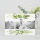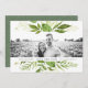 Modern green botanical save the date card features a top and bottom border of lush watercolor greenery in shades of forest and fern green, framing your favourite engagement photo. Personalise with your names, wedding date and location using the template fields. Designed to coordinate with our Wild Meadow invitation and stationery collection.