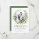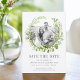Our Wild Meadow save the date card frames your favourite engagement photo with a round wreath of painted watercolor greenery in lush shades of spring green, olive and fern. A modern yet organic choice for spring or summer weddings featuring fresh green leaves in 2017's colour of the year. Personalise with your names, wedding date, location and wedding website using the fields provided.