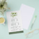 Chic botanical flyer card design displays your services, price list or business information beautifully. Design features a watercolor greenery logo in fern, forest and spring green, framing your name and/or business name on a crisp white background with forest green trim. Includes four customisable headings and body text fields, and space for your business contact information along the bottom. To adjust layout, enter your text and then use the Customise function to change positioning and font sizes.