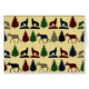 Wild Moose Wolf Wilderness Mountain Cabin Rustic Decor with a repeating pattern of moose, wolves howling, and pine trees in multiple colours of navy blue, maroon red, tan, and hunter green.