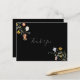 This wild multicolor floral black thank you postcard is perfect for a rustic wedding. The design features watercolor pink, blush, purple, navy and white elegant flowers with emerald green leaves in a dark background.