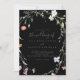 This wild multicolor floral black the wedding of invitation is perfect for a rustic wedding. The design features watercolor pink, blush, purple, navy and white elegant flowers with emerald green leaves in a dark background.