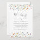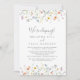 This wildflower multicolor floral elopement reception card is perfect for a modern post elopement party. The design features watercolor pink, blush, purple, navy and white elegant flowers with emerald green leaves.