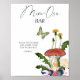 Gorgeous wild mushroom themed invitation with watercolor dandelions wildflowers and berries, butterfly, fly agarics mushrooms.