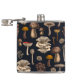 Wild Mushrooms on graphite black Hip Flask