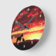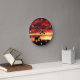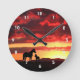 Wild Mustang Mare and Foal Silhouette With Sunset Round Clock