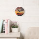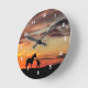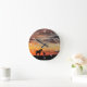 Wild Mustang Mare and Foal Silhouette With Sunset Round Clock