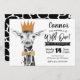Celebrate the Wild One with a jungle theme first birthday. Invitation featuring a watercolor giraffe jungle animal with gold crown and bow tie
