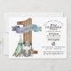 Modern tribal woodland animals first birthday party invitations for boys and girls featuring rustic elements. teepee, animals and more. Handwriting style typography completes this trending 1st birthday invitation design.