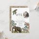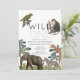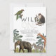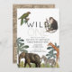 This vintage "wild one" 1st birthday invitation features an elephant, a zebra, a giraffe, a monkey, and a bird with tropical leaves and palm trees in a jungle. The reverse side features a vintage African map. Personalise it for your needs. You can find matching products at my store.