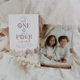 A 1st and 4th joint Birthday invitation template featuring watercolour lion faces and neutral toned safari leaves along the bottom. You can add your own photo to the back. Perfect for your 'Wild One' and 'Four Ever Wild' safari themed Birthday party!