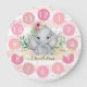 Watercolor illustration of an adorable baby elephant. Lovely pink flowers surround this super wild animal creature. The name of the child is written in a handwritten style.
