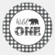 Wild One Bear Black Buffalo Plaid First Birthday Classic Round Sticker