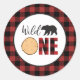Wild One Bear Buffalo Plaid First Birthday Classic Round Sticker