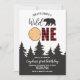 Our little Bear is a Wild One! Wilderness, Bears and Buffalo Plaid first birthday invite.