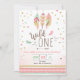 Wild one Birthday Girl Pink Gold 1st Boho Feathers Invitation
