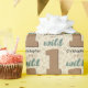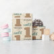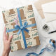 A typography 1st birthday wrapping paper in brown, tan and green will compliment any wild one birthday party. The background has a tan giraffe pattern to pull in that safari look.