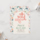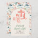 The front of the invitation showcases the whimsically scripted "Wild One" against a backdrop of a watercolor-detailed illustration featuring salmon pink wildflowers. The botanical beauty of the wildflowers, combined with the chic salmon pink hue, creates an inviting and stylish atmosphere, embracing both a boho charm and a touch of retro flair.