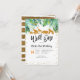 Wild One Safari Birthday invitation with wild animals, lion, monkey, elephant, bear, giraffe, and gorilla.