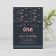 Adorable invitations for your wild one's first birthday feature a border of colourful feathered arrows in navy, teal and peach. "She's a wild one" appears in peach lettering, with your birthday party details beneath.
