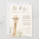 Wild One Giraffe Daisy Floral Gender Neutral Baby Invitation
