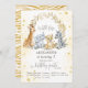 Wild One golden jungle savanna safari animals birthday party invitation template. Adorable cute baby animals, lovely for a first birthday party.
