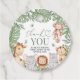 Add a sweet jungle touch to your party favours with this Wild One thank you tag! Featuring watercolor safari animals — giraffe, elephant, lion, monkey, and tiger — surrounded by lush tropical leaves. Perfect for jungle, safari, or wild one first birthday themes. Customise with your child’s name to make every gift extra special!